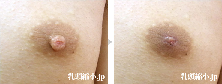 男性乳頭縮小を希望される方のほとんどは、乳頭を平坦にしてほしいと希望されます。男性乳頭縮小に不馴れな先生に手術をお願いすると、乳頭の横方向のみが縮小され、縦方向の縮小がされないことがあります。できるだけ平坦な乳首にするためには経験と技術が必要です。